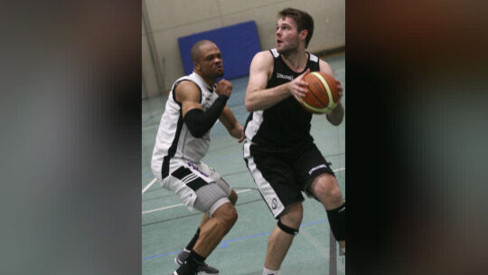 Starke Partie mit 15 Punkten: Treis-Kardens Steffen Nitzsche (rechts) war der beste TuS-Akteur beim Sieg über die Baskets Trier mit Damon Black. Foto: Jens Fiedermann
