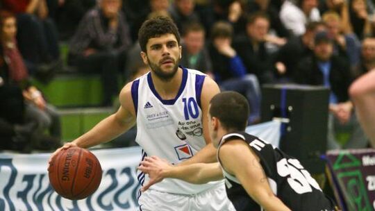 Spielte gegen Saarlouis erstmals gut 13 Minuten mit - und auch wenn Athanasios Andreou (links) keinen Punkt erzielte, brachte er doch eine gute Leistung und zeigte, dass er da ist, wenn ihn Trainer Emir Colan braucht. Foto: Jens Fiedermann