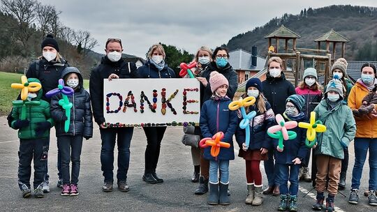 „Als wir von der Situation der Schule in Antweiler hörten, war für uns in der Schulgemeinschaft schnell klar: Wir müssen helfen“, sagt Dennis Färber vom Schulelternbeirat der Carl-von-Ibell-Schule in Diez. Rasch kam die Idee, mit einem Spendenlauf Geld für die Antweiler Schule zu sammeln. Die Schülerinnen und Schüler in Diez sorgten selbst für die Finanzierung ihrer Idee: Mit Spendenkarten organisierten sie im familiären Umfeld Sponsoren, die einen gewissen Betrag pro gelaufener Runde zusagten. Aus dem Sponsorenlauf und weiteren Spenden konnten 24.000 Euro verbucht werden, zwei Schülerinnen namens Leni und Juna haben zusätzlich 450 Euro durch Saxofonspiel in der Stadt zusammengebracht.