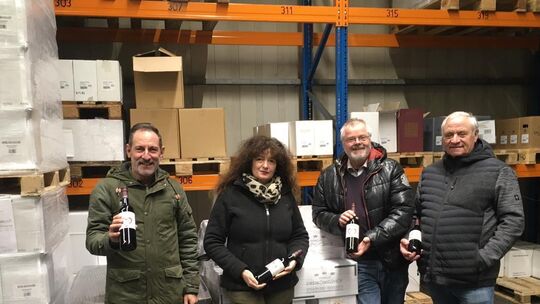 Diese 4100 Flaschen, gefüllt mit Weinen aus sieben verschiedenen, für Rheinhessen typischen Rebsorten, kamen bei der Dagernova-Weinmanufaktur in Bad Neuenahr an. Kellermeister Günter Schüller nahm sie stellvertretend für acht Weingüter zwischen Ahrweiler und Rech aus den Händen von Helmut Weber, Jörg Krick und Cornelia Grünewald-Gundlach entgegen. Mitglieder des Vereins Ahrwein konnten sich bei Interesse melden, um den Wein zu einem vorgeschlagenen Preis von 6,90 Euro vor Weihnachten in den Verkauf zu bringen.