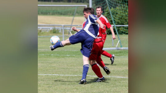 Waldemar Stier (in Dunkeblau) schenkte zum Auftakt der C Hunsrück dem TuS Dichtelbach (rechts mit Rico Hofmann) drei Tore ein. Stiers VfR Dickenschied ist nach dem 7:0 der erste Tabellenführer.