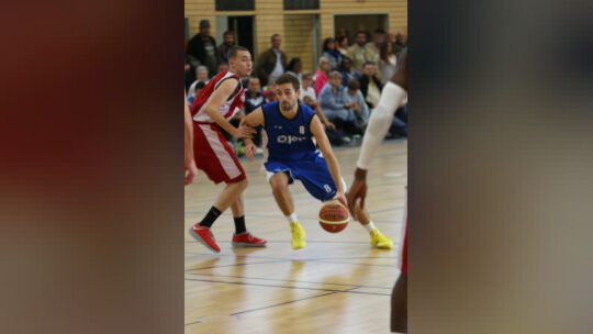 Unaufhaltsam zieht der Horchheimer Moritz Morschhäuser (am Ball) an seinen Gegenspielern vorbei - aber auch seine 13 Punkte reichten nicht, um den 1. FC Kaiserslautern zu bezwingen. Der BBC verlor 63:73. Foto: Thomas Frey