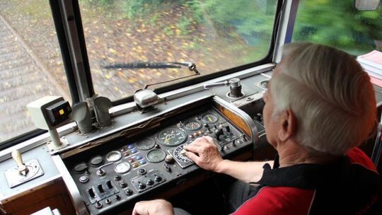 Lokführer Jürgen Spiller lenkte den roten Schienenbus sicher von Bendorf bis Grenzau und zurück. Foto: Camilla Härtewig