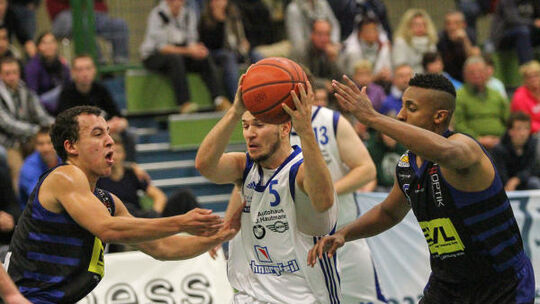 Ob Treis-Kardens Alexander Laschewski am Sonntag so kraftvoll zupacken kann wie hier beim Heimsieg in der Vorwoche gegen Limburg? Das ist eine der Personalfragen beim TuS, denn Laschewski hat Probleme mit einem eingeklemmten Nerv und fällt eventuell aus. Foto: Alfons Benz
