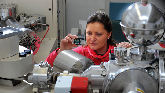 Zu den Orchideenfächern zählt auch die Mineralogie - hier bestimmt eine Mitarbeiterin des Instituts für Mineralogie der TU Bergakademie Freiberg mit dem Thermionenmassenspektrometer das Alter von Gesteinsproben.