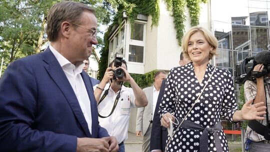 Armin Laschet am 13. August mit Julia Klöckner in Bad Kreuznach. Für den CDU-Kreischef und einstigen Söder-Befürworter Michael Cyfka kommt ein Wechsel des Spitzenkandidaten angesichts einiger rasch fallender Umfragewerte Laschets „nicht infrage“. Foto: Jens Krick / CDU-Landesverband RLP Jens Krick