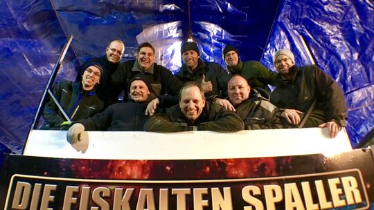 Die Eiskalten Spaller (hier ein Teil des 16-köpfigen Teams) beim Wagenbau vor elf Monaten in der Gebrother Scheune Kurt Metzlers. Die Jungs um Ulli Eckes setzen den Wagenbaumaßstab, wissen aber auch um den Anspruch der Gäste entlang der Umzugsstrecken. Fotos: Desirée Thorn, Stefan Munzlinger Stefan Munzlinge