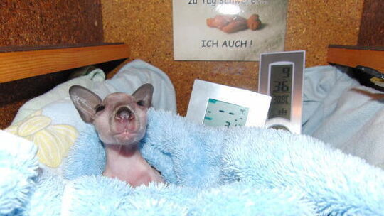 Das Kängurubaby Matilda - eingewickelt in warme Decken: Die Körpertemperatur des nackten Tierbabys muss zwingend hochgehalten werden.