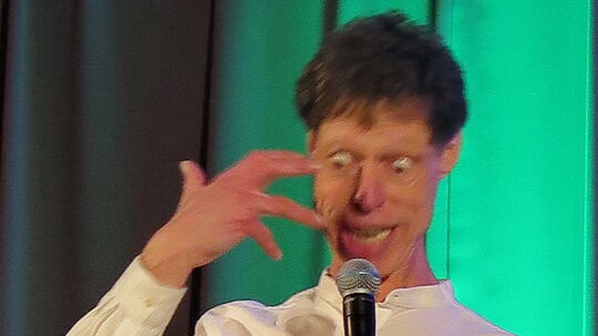 Selbstverständlich freute sich der Komiker, wieder vor richtigen Menschen reden zu dürfen. Er fragte sich nur, ob alle verkleidet waren. Schließlich ist es befremdlich, wenn ein Saal mit auf die Hälfte reduzierten Plätzen mit lauter maskierten Menschen gefüllt ist.