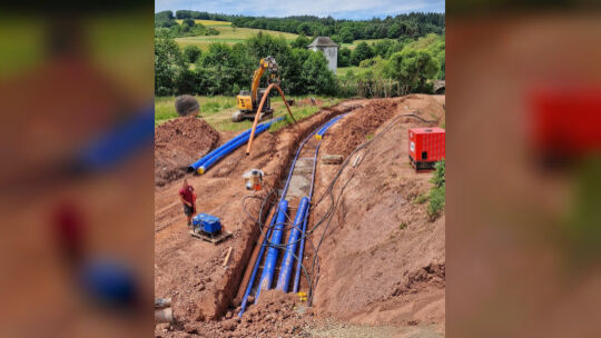 Während die VG-Werke vom Hochbehälter aus insgesamt rund zehn Kilometer neue Wasserleitungen verlegten, sollen die Arbeiten an der Druckminderungsanlage und der Querung der Landesstraße 182 möglichst in dieser Woche soweit abgeschlossen sein, dass die Straße wieder für den Durchgangsverkehr geöffnet werden kann.