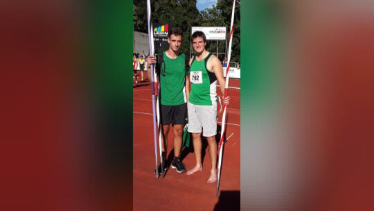 Starke Ausbeute: Im Speerwurf gab's für Lars Mesloh (rechts) in Ingolstadt DM-Bronze, sein Vereinskamerad Lorenz Kristja wurde immerhin Achter. Foto: TV Bad Ems