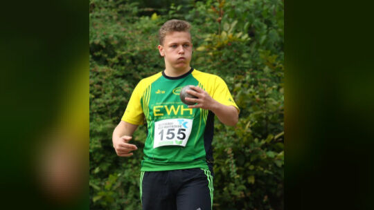 Entschlossen im Kugelstoß-Ring: Lorenz Candrix stellte im Mayener Nettetalstadion mit 13,95 Metern eine persönliche Bestleistung auf. Foto: René Weiss