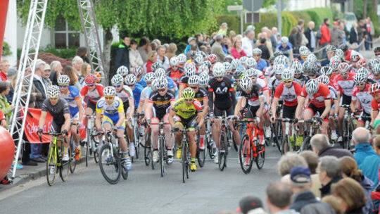 Start frei zum Rennen der C-Amateure beim "Osterpreis" des RSV "Sturmvogel" Bad Neuenahr-Ahrweiler: Am Ende setzte sich dabei unter rund 120 Fahrern Stefan Parinussa vom OSG Westfalen Dortmund im Sprint durch. Foto: Vollrath