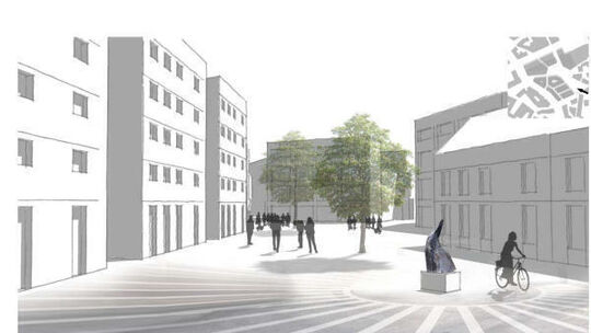 Der Bischofsplatz könnte ein neues Zentrum im offenen Wohn- und Einkaufsquartier an der Ludwigsstraße werden.