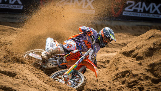 Tensfeld/Niederroßbach. Die Motocross-Piloten der ADAC MX Masters starteten in Tensfeld (Schleswig-Holstein) in die zweite Hälfte der Serie. Die tiefsandige und anspruchsvolle Strecke im Norden Deutschlands stellt für Mensch und Maschine immer wieder eine besondere Herausforderung dar - auch für die beiden Piloten des Niederroßbacher KTM Saarholz Racing Teams. Während sich Henry Jacobi am Ende mit Rang zwölf begnügen musste, schnupperte Teamkollege Angus Heidecke lange an den Podiumsplätzen und landete schließlich auf Platz fünf.