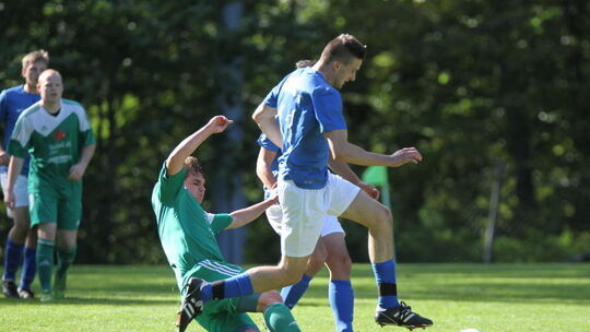 Besonders die Anfangsphasen beider Halbzeiten waren lebhaft und von vielen Toren geprägt. Den Anfang machten die Gastgeber. SG-Spielertrainer Martin Mayer schlenzte den Ball in seiner typischen Art mit dem Außenrist in die Gefahrenzone.