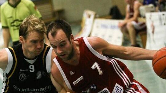 Treis-Karden und Benni Keifenheim (rechts) legten sich zwar gegen die TG Hanau mit Norman Lang ins Zeug, aber am Ende war der Tabellenführer doch eine Nummer zu groß und siegte mit 92:74 an der Mosel. Keifenheim verbuchte dabei sechs Punkte, Lang vier.