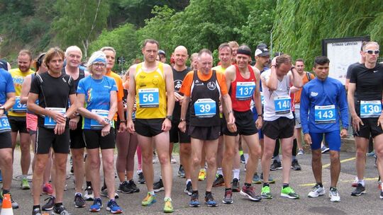 Kurz vor dem Start zum Hauptlauf an Rhein und Lahn: Andreas Knopp (Nummer 56) siegt am Ende vor Mario Stockschläder (130). Fotos: Thorsten Stötzer Thorsten Stötzer