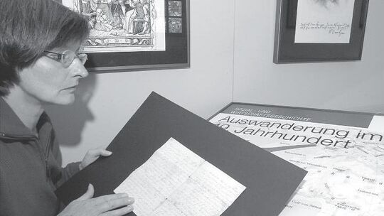 Vom Karton ins Hunsrück-Museum: Christel Schumacher archiviert den Brief des Auswanderers John Weiler. Foto: Werner Dupuis