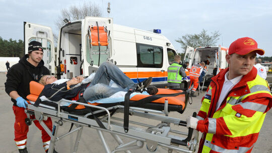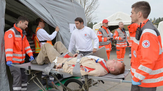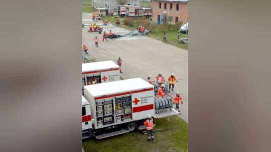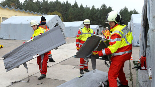 Es ist die erste Übung der Medizinischen Task Force (MTF) des Bundes, auf einem Truppenübungsplatz in Brück bei Potsdam. Diese Spezialeinheit für den Zivil- und Katastrophenschutz kommt zum Einsatz, um die regulären Kräfte am Ort zu unterstützen und bei der Versorgung einer großen Anzahl von Verletzten zu helfen. Etwa nach einer Explosion, einem Unfall oder einem Terroranschlag irgendwo in Deutschland. Zu der Task Force gehören Mitarbeiter von Hilfsorganisationen oder den Feuerwehren.