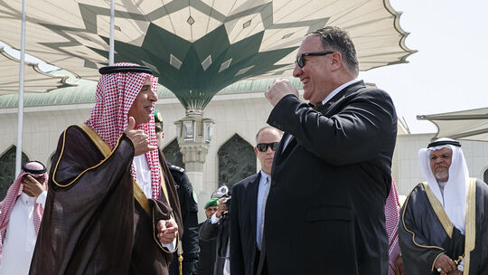 Gute Freunde: Adel al- Dschubeir, Außenminister von Saudi- Arabien, verabschiedet Mike Pompeo, Außenminister der USA, am Flughafen.