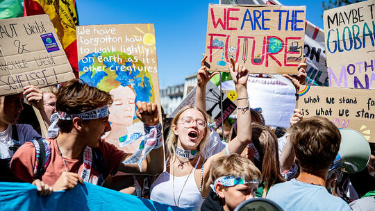 Junge Teilnehmer einer Klimademonstration „Fridays for Future“.