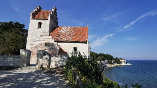 Dramatisch nah am Rand der Klippen von Stevns Klint thront die Højerup Gamle Kirche. Thilo Hagen