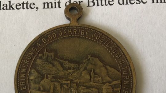 Wie unschwer zu erkennen, handelt es sich um eine jener Medaillen, die 1898 zum 50. Jubiläum des Turnvereins angefertigt wurden.