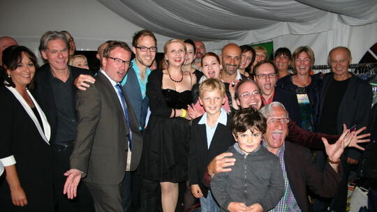 Ausgelassene Freude: Darsteller, Verantwortliche und Gäste der Burgfestspiele haben die Welturaufführung von "Genoveva" gefeiert.