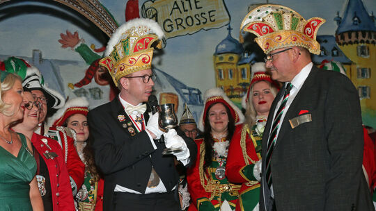 Der designierte Prinz Peter V. erhielt aus den Händen seines Vorgängers Peter IV. (Otto) den Kelch des Prinzen. Orden und Präsente überreichte PeterOtto dem gesamten Hofstaat. Foto: Elvira Bell Elvira Bell