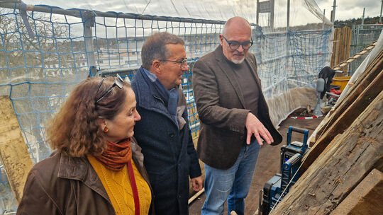 Hoch über den Dächern von Andernach erläutert der Leiter des Gemeindeamtes Andreas Schulte (rechts) das Ausmaß der Restaurierung im Dachgeschoss. Wolfgang Lucke