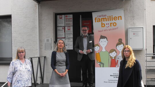 Margot Kürsten, Margret Marxen-Ney, Werner Steffens, Geschäftsführer des Caritasverbandes Rhein-Mosel-Ahr, und Martina Messan freuen sich über den positiven Zwischenbericht zum Familienbüro. Foto: Patrick van Schewick Patrick van Schewick