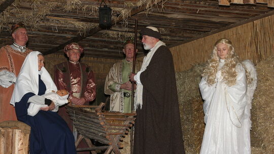 Die Heilige Familie mit Maria (Sandra Schwindenhammer) und Josef (Ralf Roches) empfängt die drei Weisen aus dem Morgenland. Ralf Roches ist seit 33 Jahren in der Rolle des Josef zu sehen. Elvira Bell