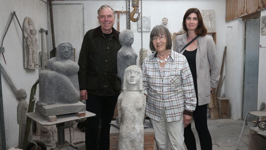 Im Atelier des verstorbenen Steinbildhauers Dieter Heuft sprechen dessen Witwe Klara Heuft und Nicole Mattern sowie Stefan Neuhaus von KulturVereint über die "Mendiger Tage der Kunst". Elvira Bell