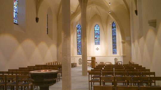 Die Wände der frühgotischen Pfarrkirche St. Bartholomäus wurden in einem warmen Weißton gestaltet. Künftig können die Namedyer dort wieder Gottesdienste feiern, nachdem das Gotteshaus seit Pfingsten 2021 für die Sanierungsarbeiten geschlossen bleiben musste.