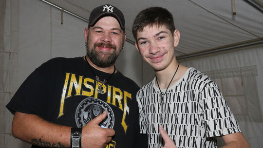 Daumen hoch: Justin Sänger und sein Vater freuen sich, dass der 14-Jährigenun seine erste Impfung bekommen darf. Elvira Bell