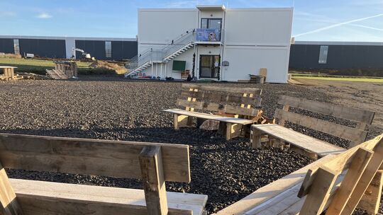 Wer dem Geisnacher Weg in Polch bis zum Ende folgt, sieht sie nach kurzer Fahrstrecke vor sich aufragen: die Containeranlage, die derzeit noch die Freie Montessori-Schule Sonnenschein beherbergt. Die direkte Umgebung ist bereits mit Lavaschotter aufgefüllt und planiert; hier sollen in den kommenden Jahren die neuen Schulgebäude entstehen.