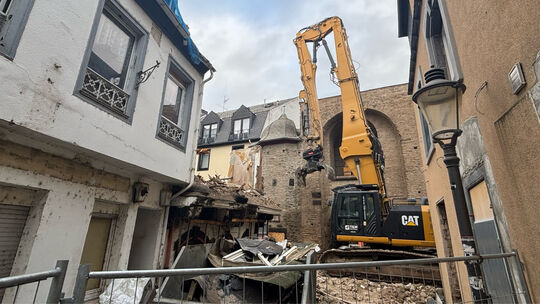 Noch vor Weihnachten wurde das einsturzgefährdete Nikoläuschen an der Ecke Rheinstraße/Mauerstraße in Andernach bis auf das erste Geschoss abgerissen. Damit endet vorerst die Geschichte der stadtbekannten Schrottimmobilie gegenüber des historischen Rheintors.