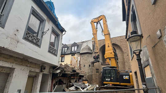 Noch vor Weihnachten wurde das einsturzgefährdete Nikoläuschen an der Ecke Rheinstraße/Mauerstraße in Andernach bis auf das erste Geschoss abgerissen. Damit endet vorerst die Geschichte der stadtbekannten Schrottimmobilie gegenüber des historischen Rheintors.