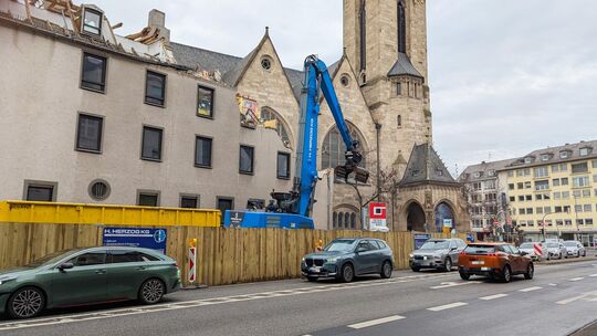 In der Hohenzollernstraße in Koblenz wird ein Haus abgerissen. Nicht nur ragt die Baustelle in den Straßenraum hinein, auch der Gehweg ist gesperrt. Offenbar verzichten manche Fußgänger auf Umwege, laufen über die Straße – das kann gefährlich werden.