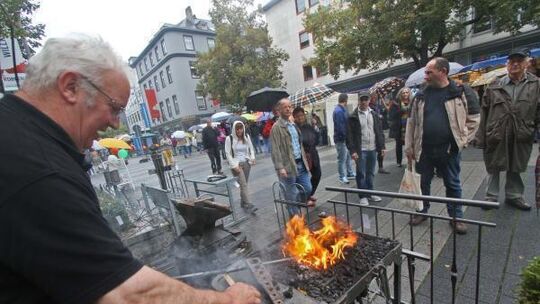 Während der Markt am Freitag bei noch trockenem Wetter gut anlief und auf Gassen und Plätzen der Altstadt kräftig gefeiert wurde, fegten heftige Regenschauer und Gewittergrollen die Besucher am Samstagnachmittag aus der Stadt.