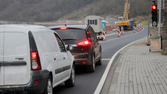 Trotz halbseitiger Sperrung der B49 mit Ampelregelung fließt der Verkehr zwischen Lay und Moselweiß zügig und ohne Staus. Erwin Siebenborn