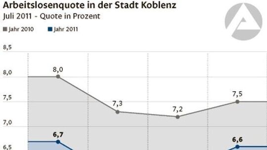 Koblenz/Region - Traditionell hat die Ferienzeit Auswirkungen auf den Arbeitsmarkt. Im Juli 2011 war das nicht anders. In Koblenz ist die Zahl der Arbeitslosen im Vergleich zum Juni um 281 auf 3608 gestiegen. Der Landkreis Mayen-Koblenz meldet eine Steigerung um 202 auf 5436 Arbeitslose.