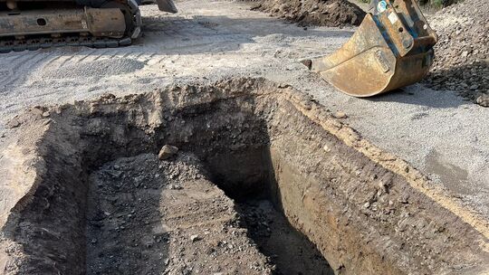 Ausgeschachtet: An zwei Stellen (1,5 mal 1,5 Meter groß) im Garten Herlet wurde die jüngste Erdschicht abgetragen, um sie archäologisch zu untersuchen und möglicherweise alte Siedlungsschichten freizulegen. Ruben Schäfer