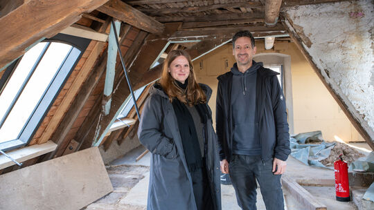 Der Dachboden ist wohl der Lieblingsort von Claudia Fritsche und Erik Ullrich: Hier entsteht eine von sechs Ferienwohnungen. Mirco Klein