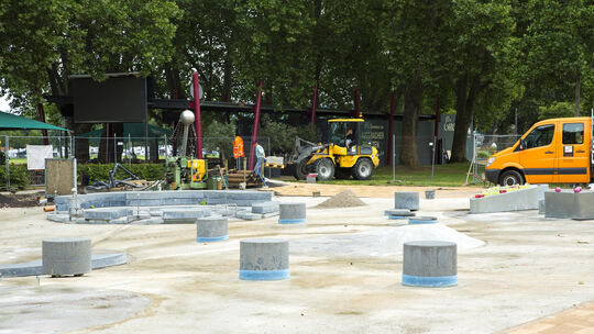Baustelle: Am Wasserspielplatz kann man noch nicht planschen