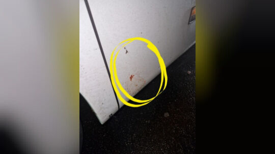 Der Busfahrer Frank Baunach hat die Flecken fotografiert, die die Tomaten an seinem Bus am Koblenzer Moselufer hinterlassen haben. Frank Baunach