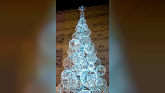 Ein Raunen ging durch die Menge, als der neue große Weihnachtsbaum aus Drahtkugeln am Koblenzer Zentralplatz erstrahlte: Der Platz hat einen neuen echten Hingucker.