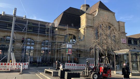 Noch laufen die Arbeiten: Seit Montag wird der Koblenzer Hauptbahnhof eingerüstet. Warum, das erklärt die Bahn in dürren Worten.
