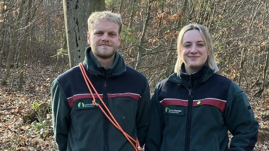 Ann-Kathrin (27) und Jonas Frings (28) sind Förster der Reviere Untermosel und Rhens. Die beiden Reviere liegen nicht nur nebeneinander, sondern gehen teils ineinander über. Umso besser, dass die beiden nicht nur die Profession teilen, sondern auch miteinander verheiratet sind.